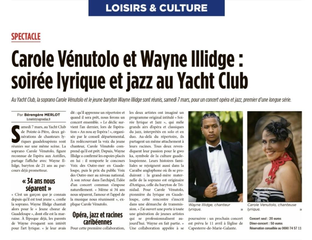 Carole Vénutolo et Wayne Illidge : soirée lyrique et jazz au Yacht Club 10 mars 2026 par Erika Dessart