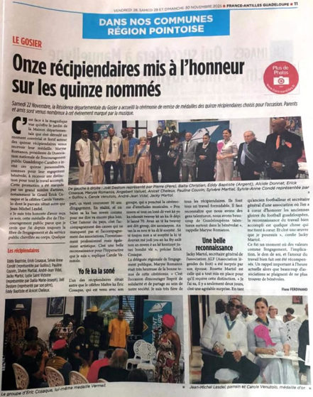 Article de presse France Antilles : « Onze récipiendaires mis à l’honneur sur les quinze nommés »